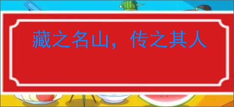 cáng zhī míng shān,chuán zhī qí rén把著作藏在名山,传给志趣相投的人。汉·司马迁《报任少卿书》仆诚以著此书,藏诸名山,传之其人,通邑大都,则仆偿前辱之现,虽万被戮,岂有悔哉。”一个人做一部书,~”,是封建时代的事,早已过去了。★鲁迅《准风月谈·序的解放》