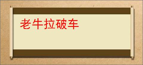 老牛拉破车的意思 老牛拉破车的读音和出处,老牛拉破车的名称">成语名称: 老牛拉破车成语拼音:[lǎo niú lā pò chē] 成语解释:形容人做事就像老牛拉破车,慢慢吞吞,不讲究效率成语出处:吴强《红日》第六章:“那么,什么时候解决战斗?还是老牛拉破车,慢慢吞吞的吗?”成语例句:胡天培《山村新人》:“人家都是坐汽车,坐飞机,可咱呢,老牛拉破车。”是否常用:常用成语感情褒贬:贬义成语成语词性:作谓语、定语;指做事效率低结构类